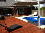Decking next to a pool area with spa / bath area. |